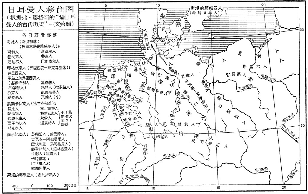 为了使[塔西佗的]“日耳曼尼亚志”和托勒密关于各民族的分类彼此协调,并且使它们同其他混乱的古代史料也能协调,曾经有两本古典著作在这方面作了徒然的努力,这便是卡斯巴尔·措伊斯的“日耳曼人[和邻近各部落]”和雅科布·格林的“德意志语言史”320。这两位天才的学者以及后来的研究者没有做到的事情,应当说,利用我们现有的资料也是无法解决的。资料的不足,从这两位学者不得不建立一些虚假的辅助性的理论这一事实中看出来;措伊斯以为一切争论问题的最后结论应该从托勒密的著作中去寻找,虽然谁也没有像他那样尖锐地指明了托勒密的根本错误;格林以为推翻罗马世界帝国的那种力量,应该是在比莱茵河、多瑙河和维斯拉河之间这一块地方更为广阔的地区成长起来的,因此多瑙河下游的北部及东北部的大部分土地,应该和哥特人及达克人的土地一起,同样看做是日耳曼人的。不论是措伊斯的或者是格林的假设,今天都已经过时了。